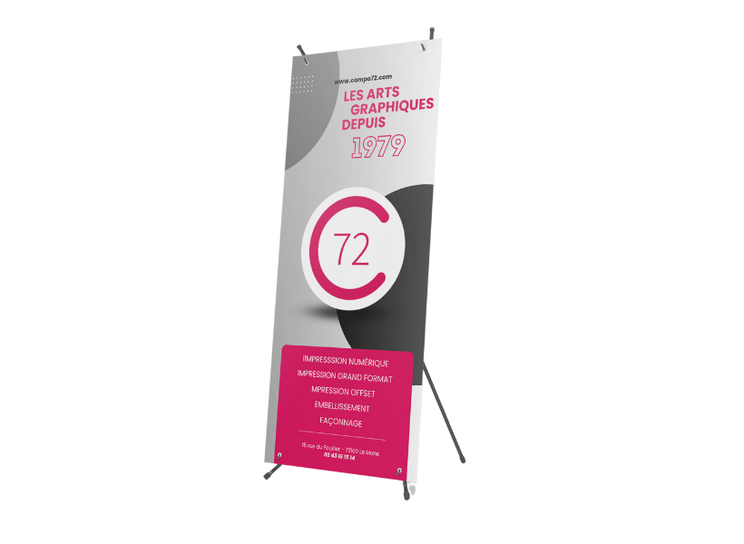 Le X-Banner se distingue par sa conception innovante et sa simplicité d’utilisation, en faisant un support idéal pour vos projets marketing. Que ce soit pour des salons professionnels, des conférences ou des campagnes en point de vente, il répond parfaitement aux besoins des entreprises modernes.